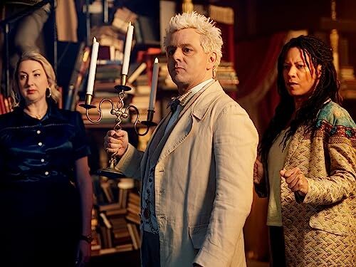 第1章:到着 “Chapter 1: The Arrival” あらすじ アジラフェルの書店の入り口に1人の訪問者が現れる。これによりもたらされた混乱で、現役を退いた天使のアジラフェルと悪魔のクロウリーの生活は激しくかき乱される。クロウリーが怒りを爆発させた時、地元商…
